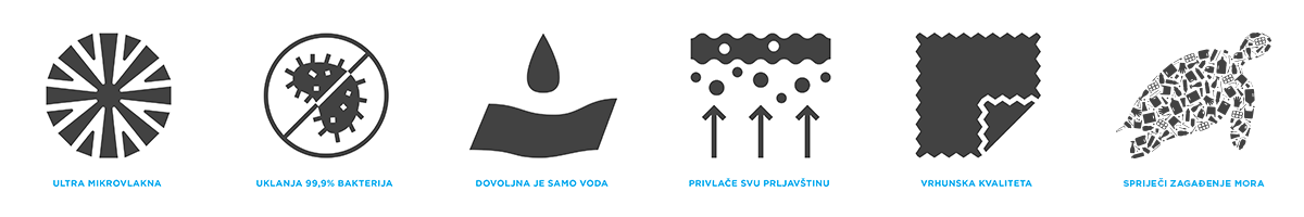 - nezavisnim laboratorijskim testiranjima je dokazano da se čišćenjem s mikrovlaknima (samo s vodom!) sa površine uklanja 99,9% bakterija, zbog čega su, osim u kućanstvu, izrazito pogodna i za upotrebu u bolnicama, restoranima, školama…